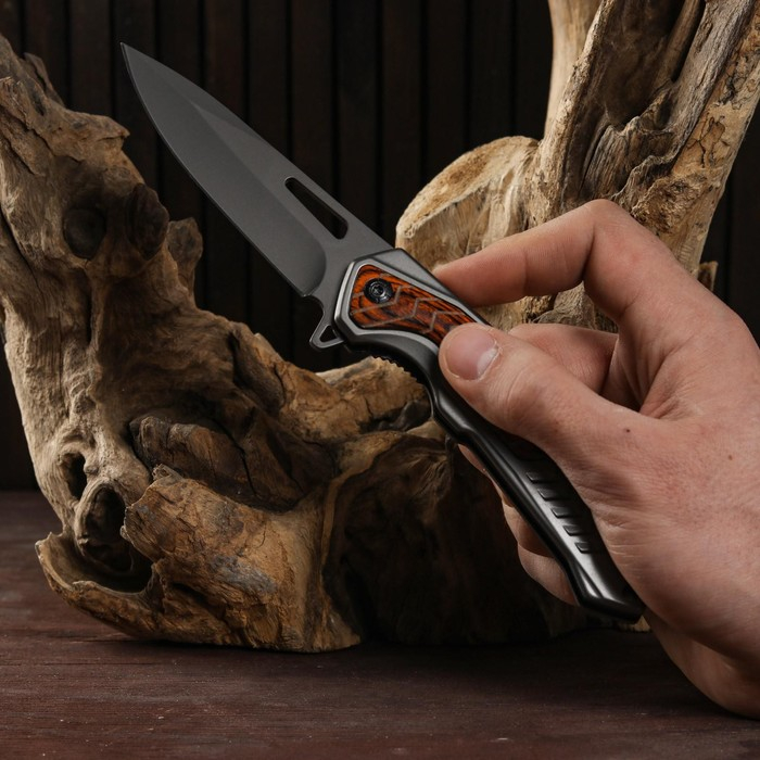 Нож складной "Хищник" полуавтоматический, накладка из дерева, 22см, клинок 9,3см