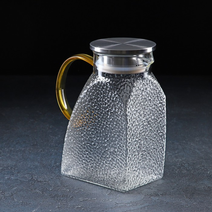 Кувшин для воды стеклянный с металлической крышкой Magistro «Сара», 1,3 л, 16,9×19,5 см