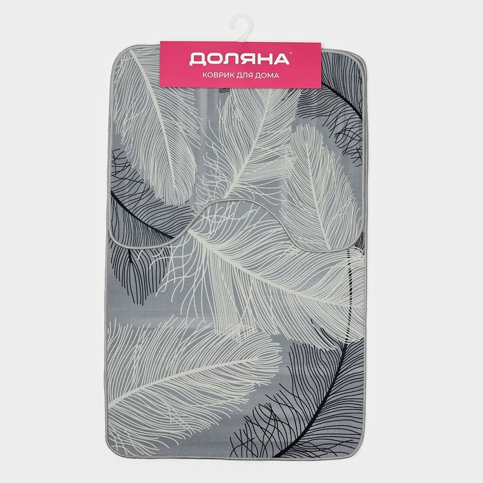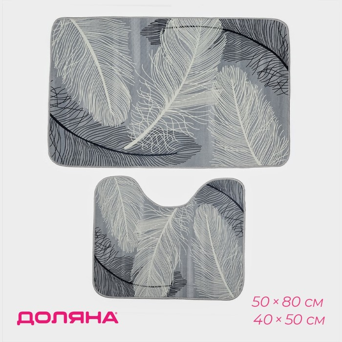 Набор ковриков для ванной и туалета Доляна «Пёрышки», 2 шт, 50×80 см, 40×50 см, цвет серый
