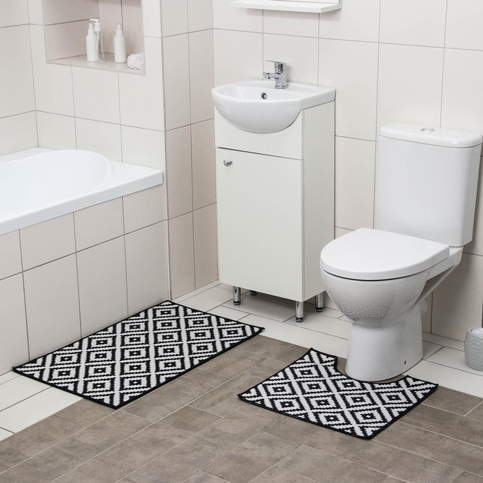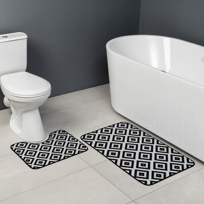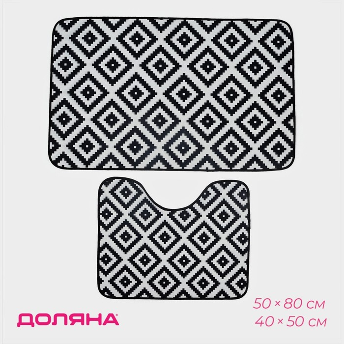Набор ковриков для ванной и туалета Доляна «Грета», 2 шт: 50×80, 40×50 см, цвет чёрно-белый
