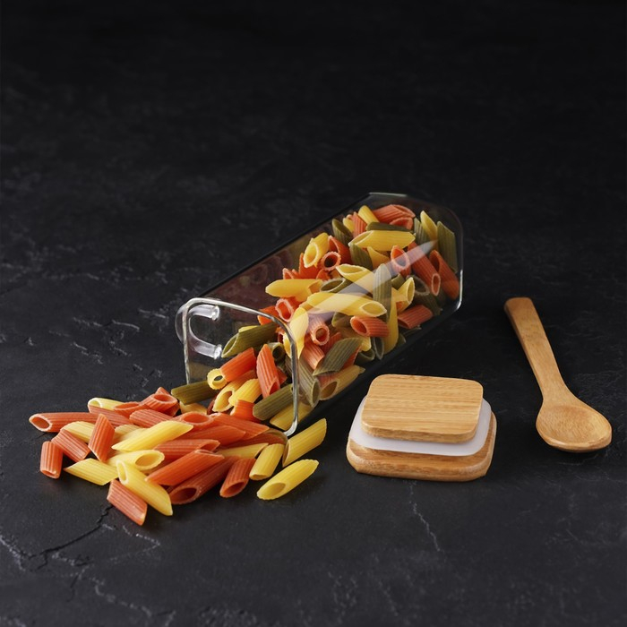 Банка стеклянная для сыпучих продуктов с бамбуковой крышкой и ложкой «Эко», 420 мл, 8×6×15,5 см