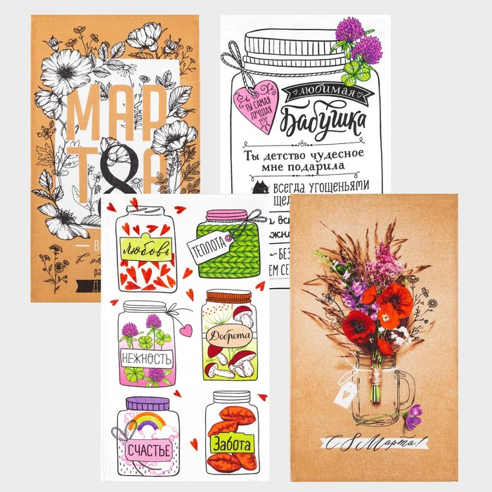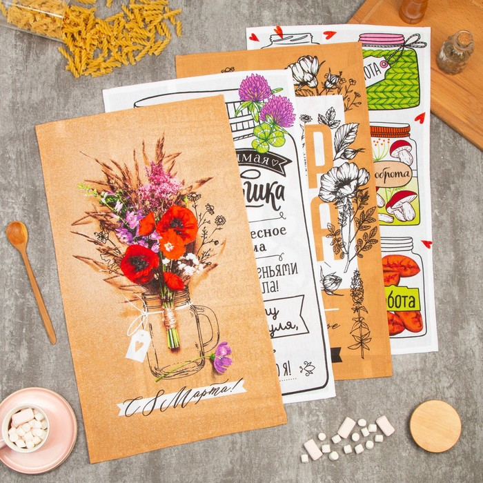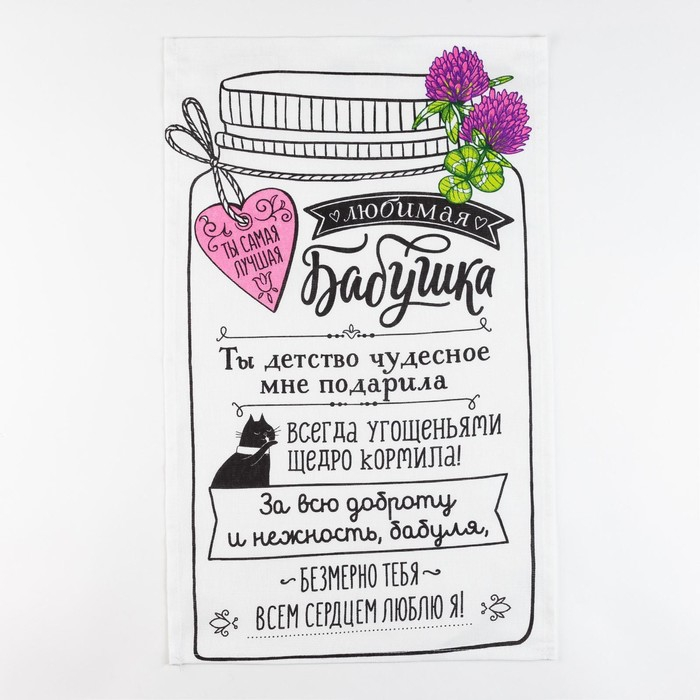 Набор кухонных полотенец Доляна «Любимая бабушка», 35х60см-4шт, 100% хлопок