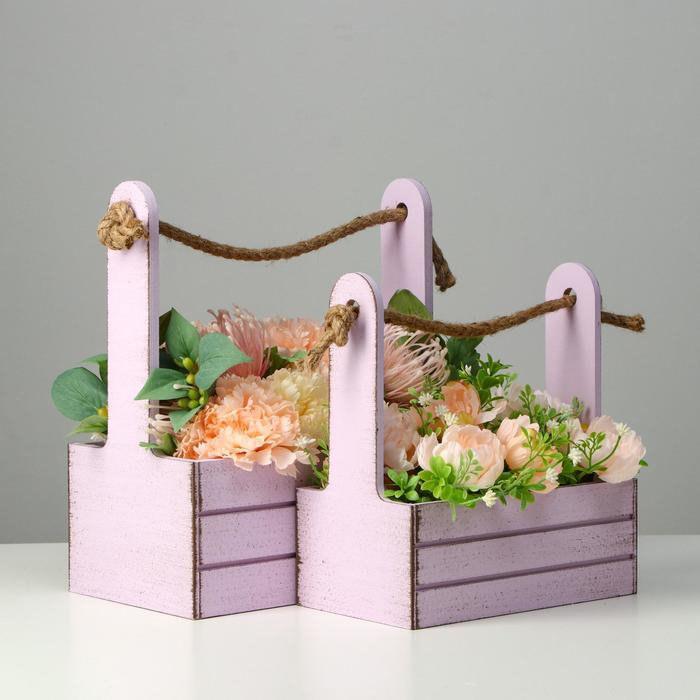 Набор кашпо деревянных 2 в 1 (25.5×15×30; 20×12×23) "Прованс", сиреневый