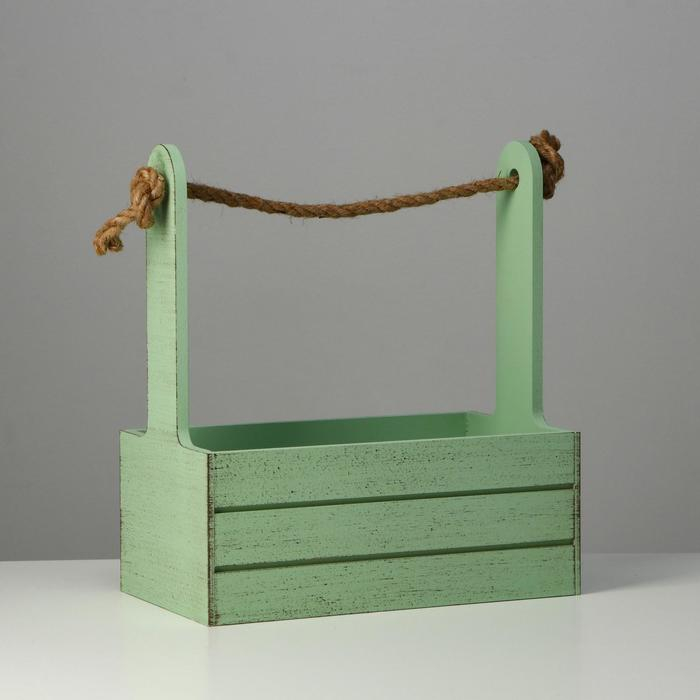 Кашпо деревянное 25.5×15×30 см "Прованс", ручка канат, зелёный
