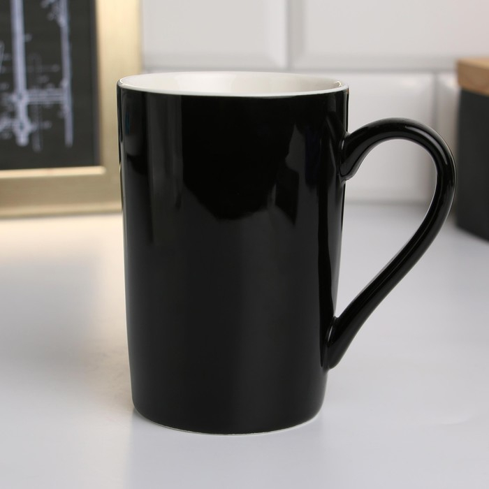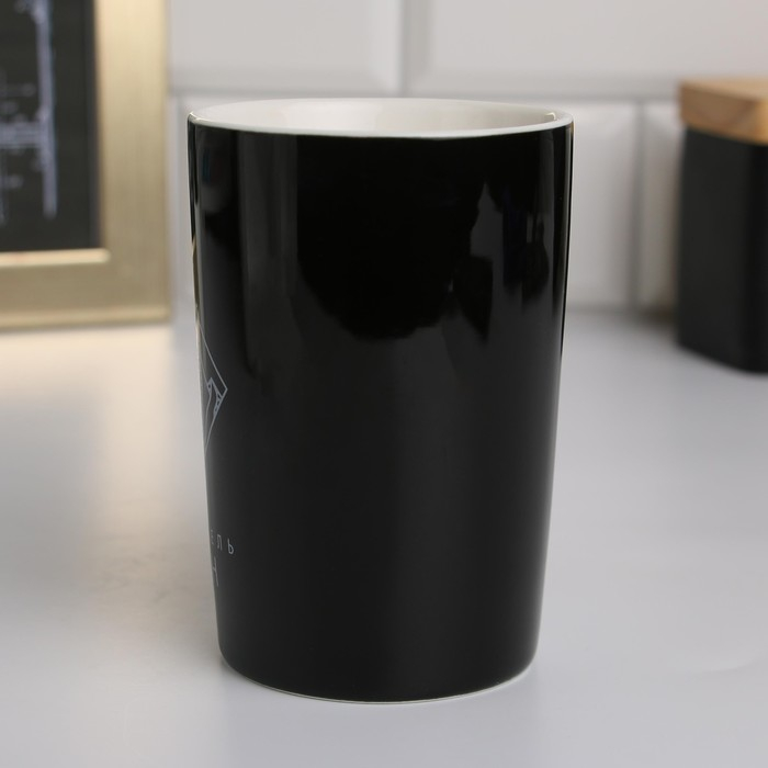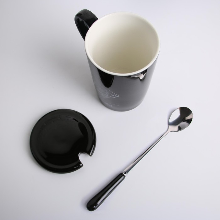Кружка керамическая с ложкой и крышкой «Покоритель вершин», 400 мл, цвет чёрный