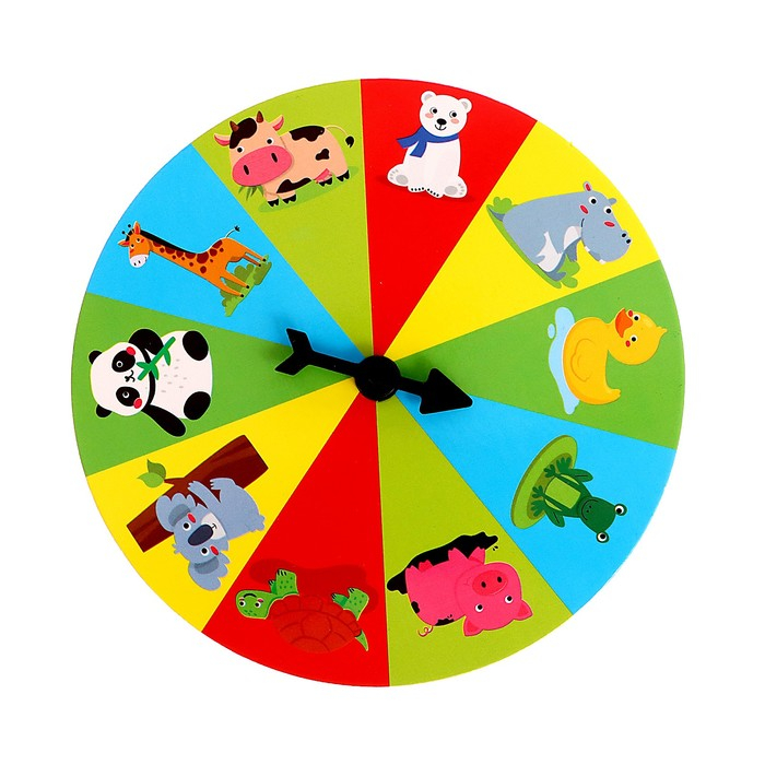 - Раскрутите рулетку и спросите у малыша, на какое животное указывает стрелочка.