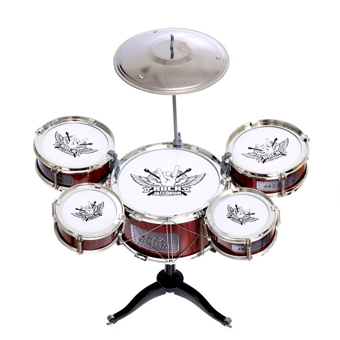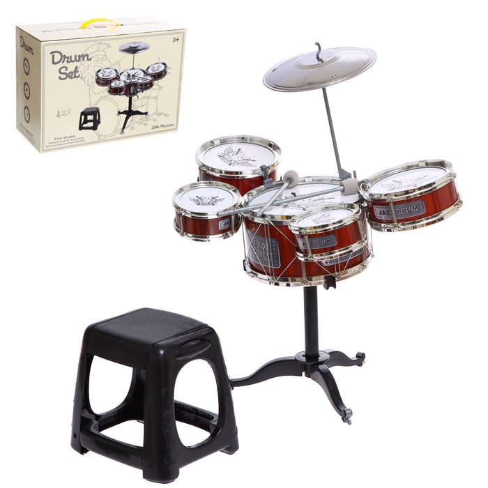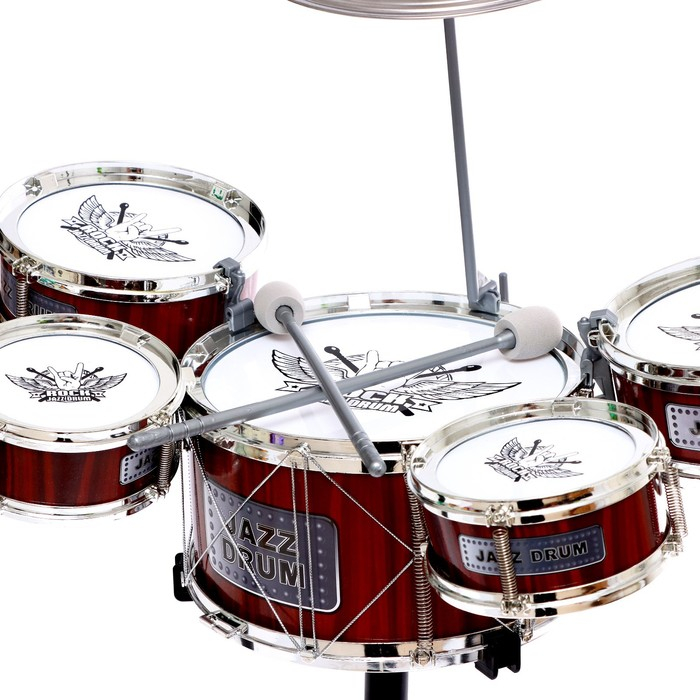 Барабанная установка «Рок», 5 барабанов, тарелка, палочки, стульчик