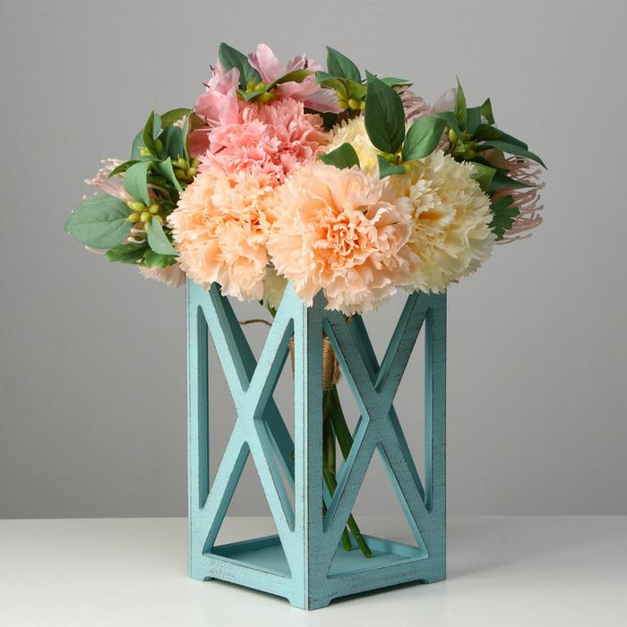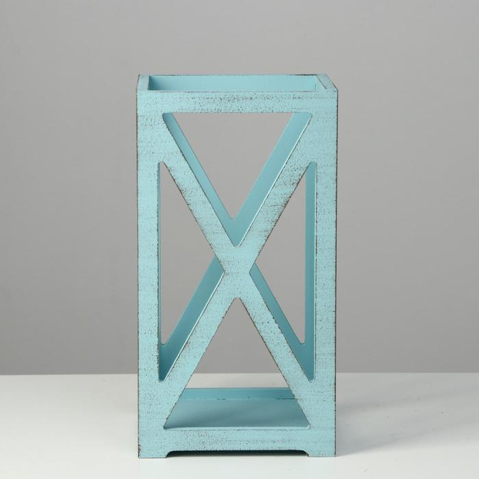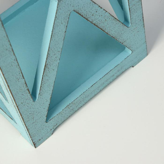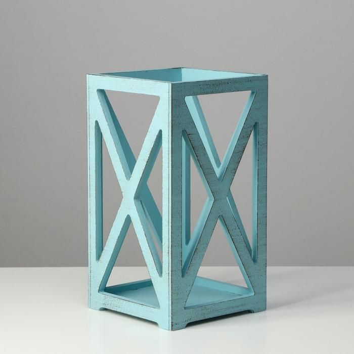 Кашпо деревянное 14×14×26 см "Фонарь Хай-тек Прованс", серо-голубой
