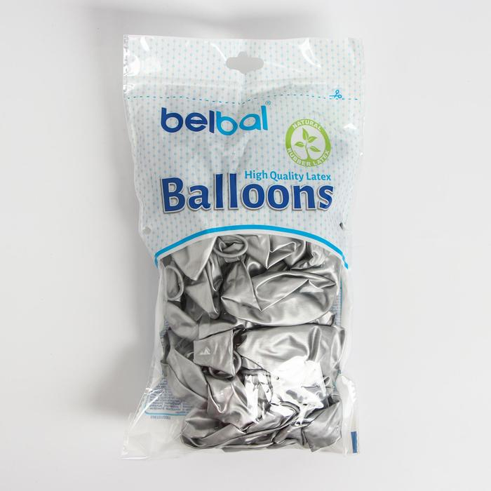 Шар латексный 14", хром Glossy, серебро, набор 50 шт.