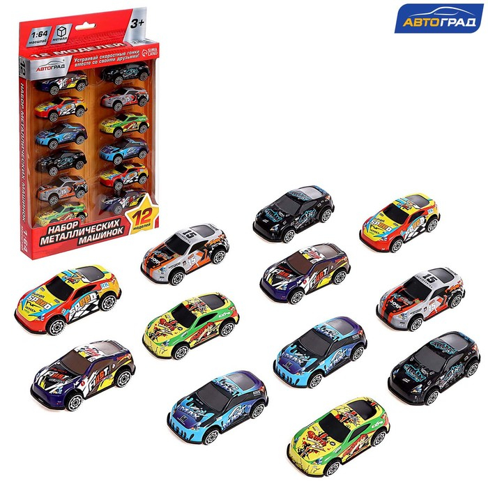 - 12 гоночных автомобилей в комплекте. Машинки небольшого размера подходят для игр на автотреках и парковках.
