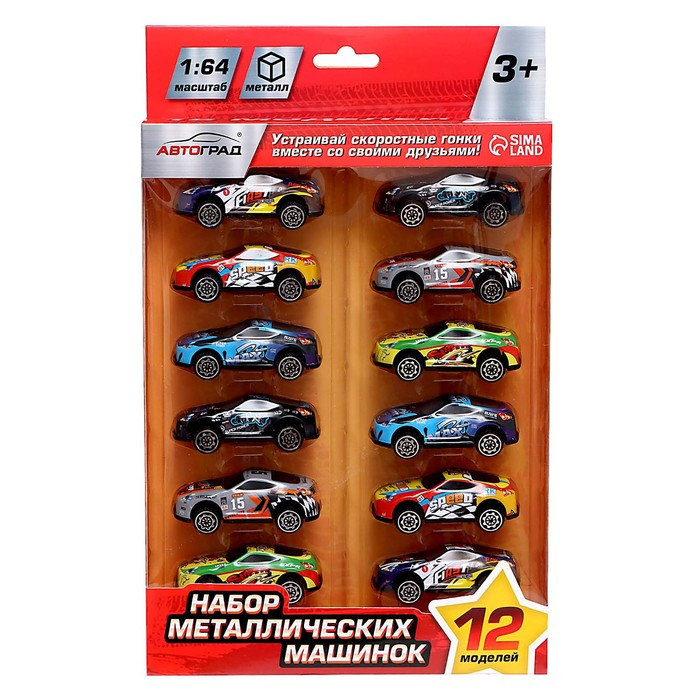 Набор металлических машин SPEED, 12 штук, масштаб 1:64
