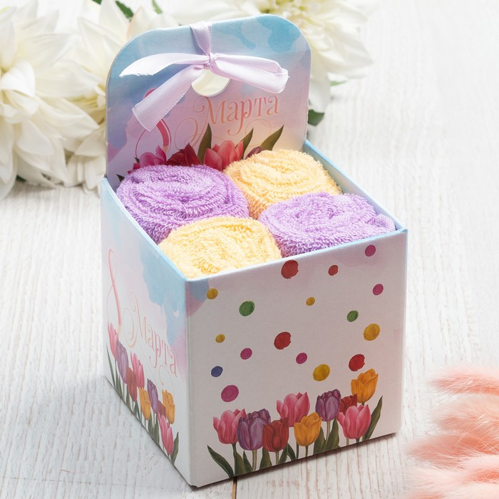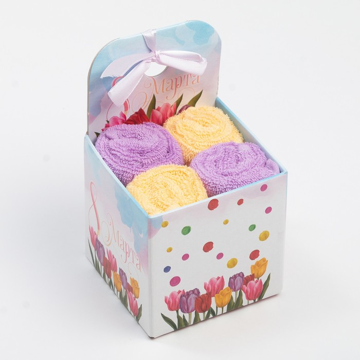 Набор махровых полотенец «8 Марта» 30х30 см - 4 шт, 100% хлопок 340 гр/м2