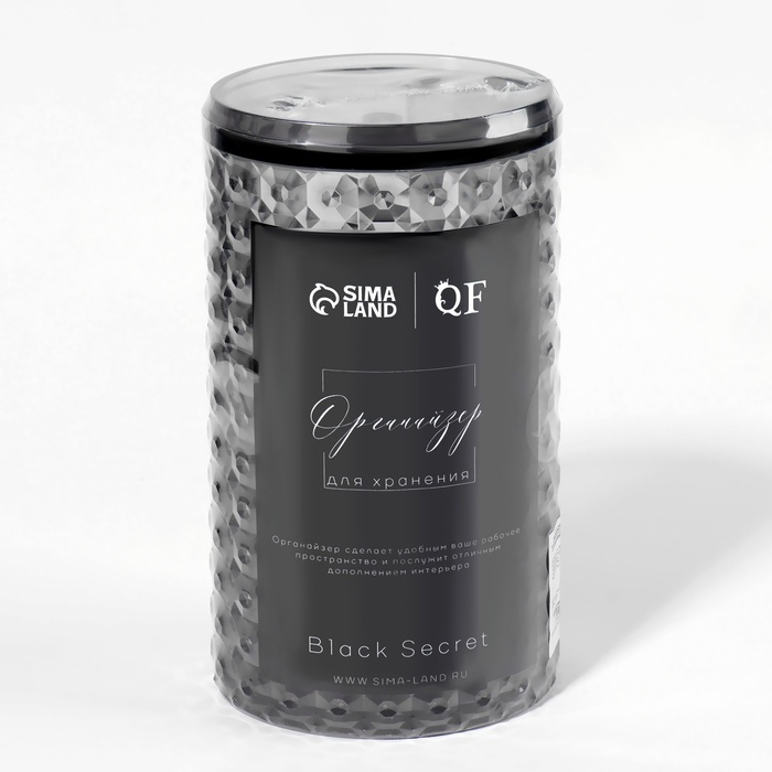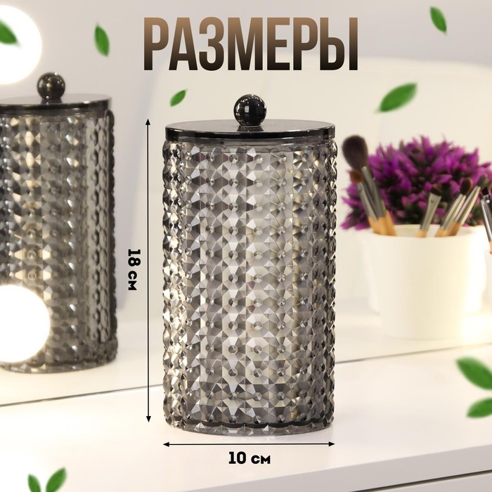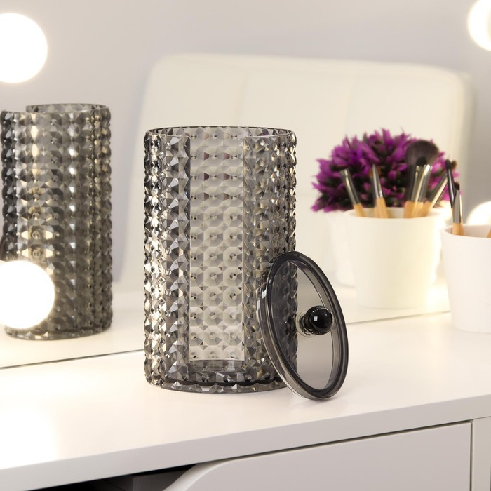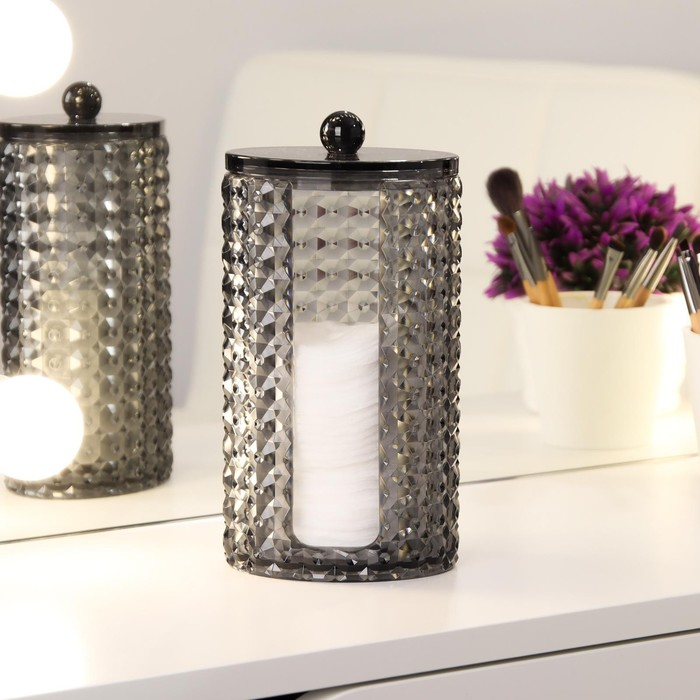 Органайзер для хранения ватных дисков «Black Secret», с крышкой, 18 × 10 × 7,5 см, цвет чёрный