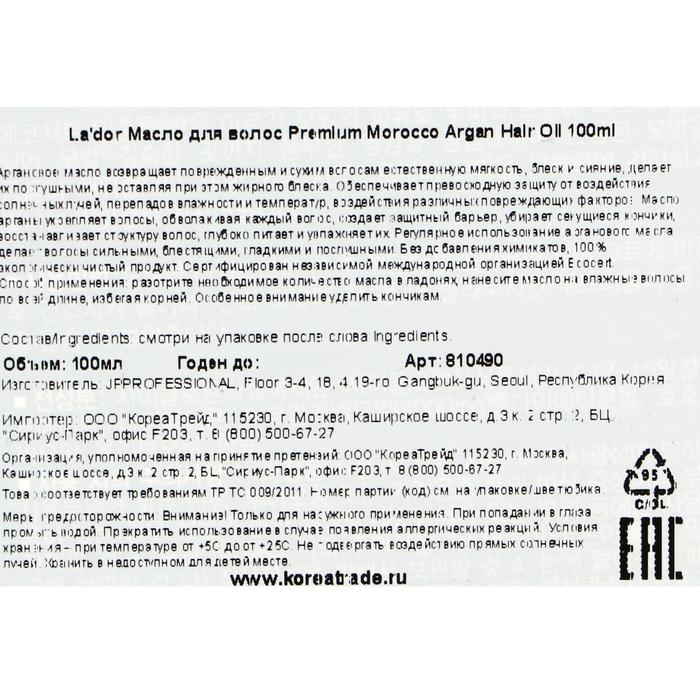 Масло для волос La'dor марокканское аргановое, 100 мл