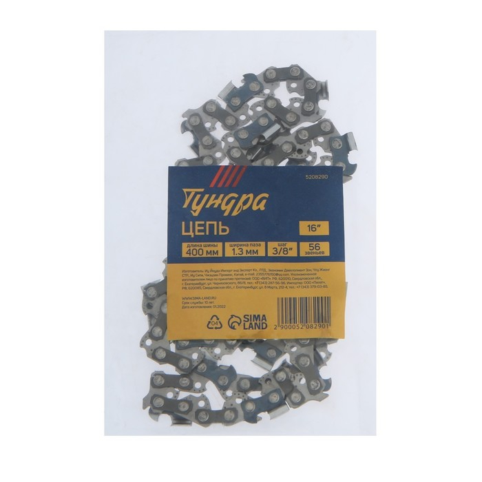 Цепь для бензопилы ТУНДРА, 16", 400 мм, ширина паза 1.3 мм, шаг 3/8", 56 звеньев