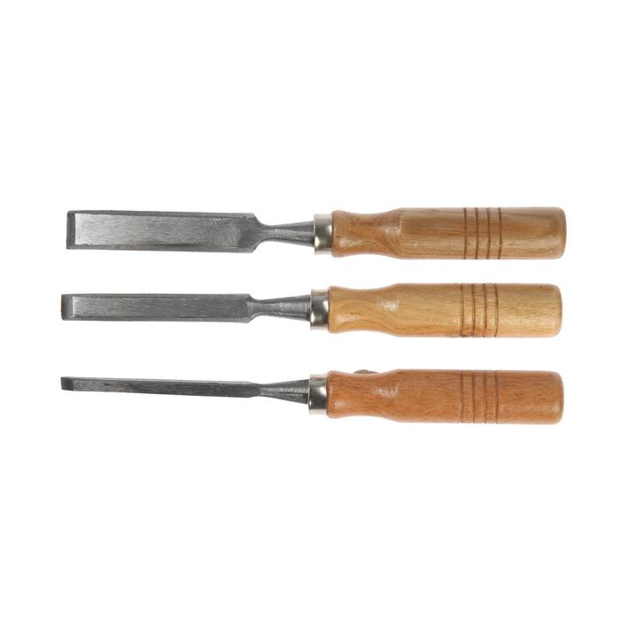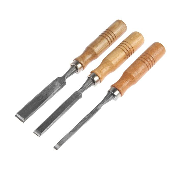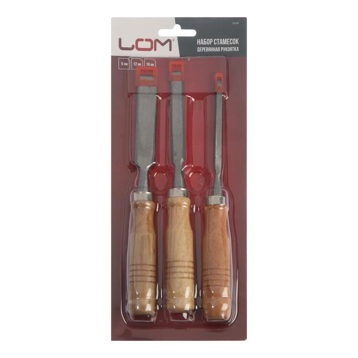 Набор стамесок ЛОМ, деревянная рукоятка, 6-12-18 мм