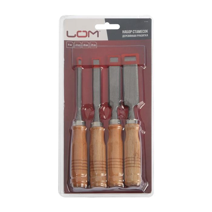 Набор стамесок ЛОМ, деревянная рукоятка, 6-12-18-24 мм