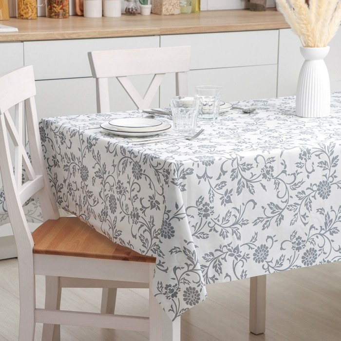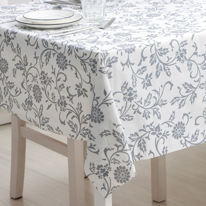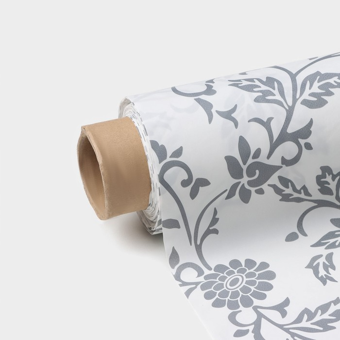 Клеёнка на стол на нетканой основе Доляна «Цветы», ширина 140 см, рулон 20 м, цвет серый