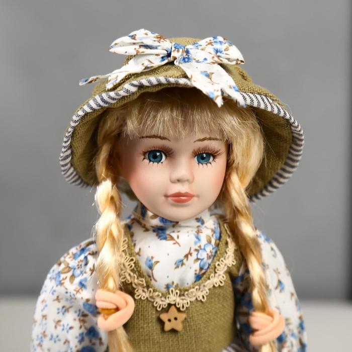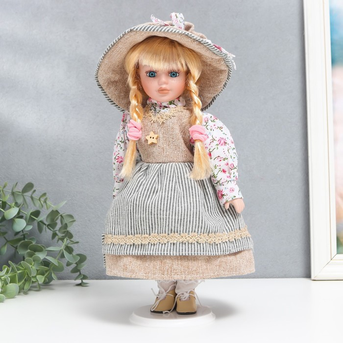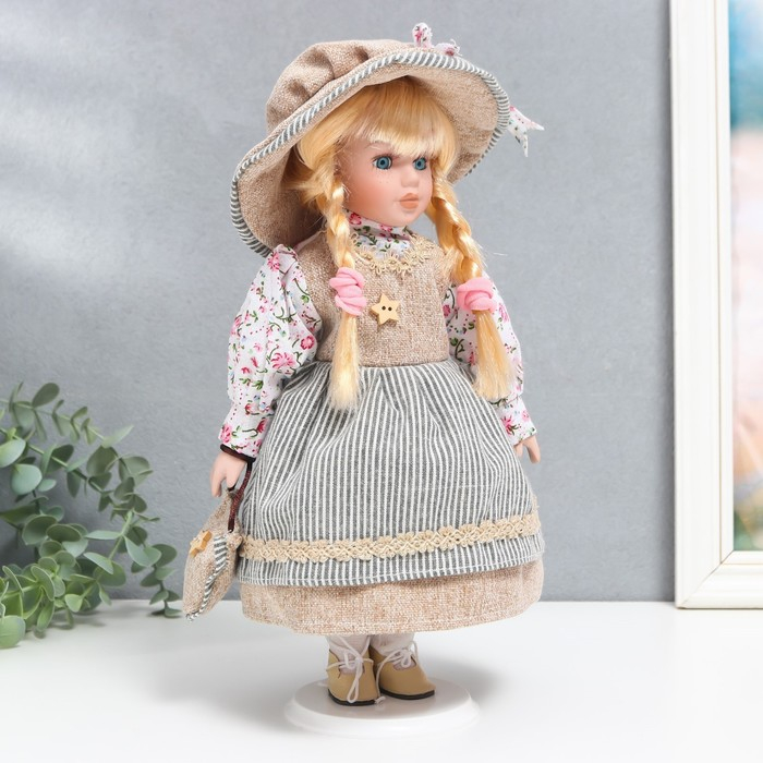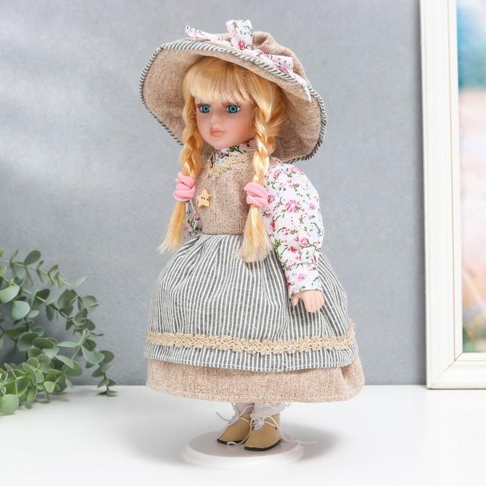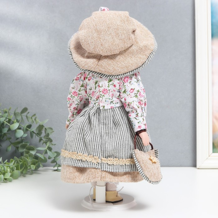 Кукла коллекционная керамика "Ирина в платье в полоску" 30 см