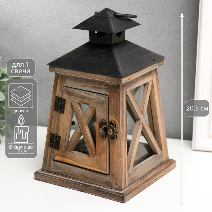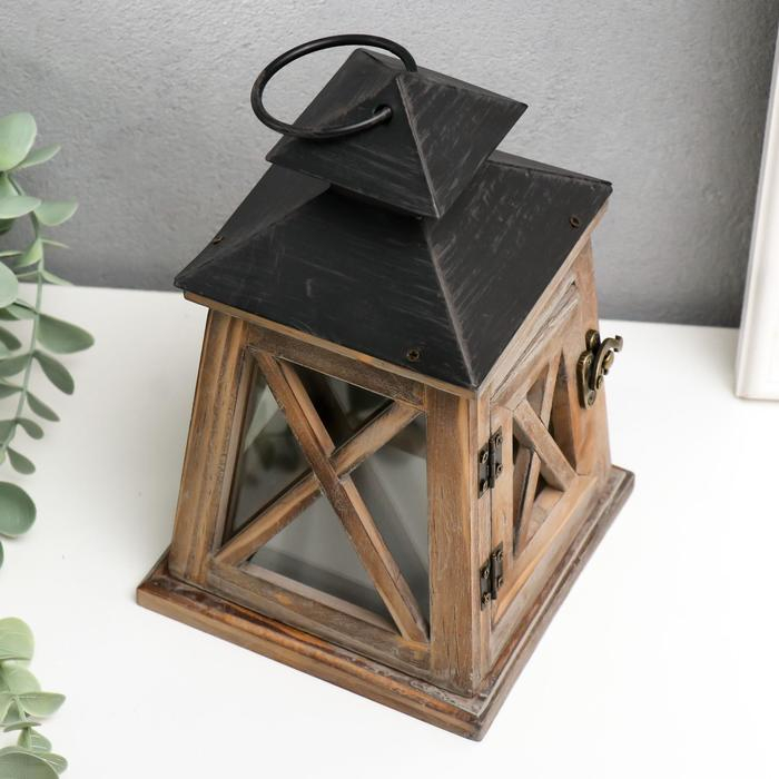 Подсвечник дерево на 1 свечу "Фонарь трапеция" коричневый 20,5х12,5х12,5 см