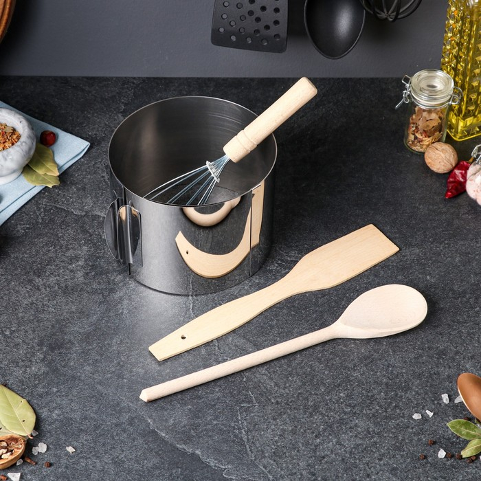 Подарочный набор кухонных принадлежностей, 4 предмета: раздвижная форма, лопатка, ложка, венчик
