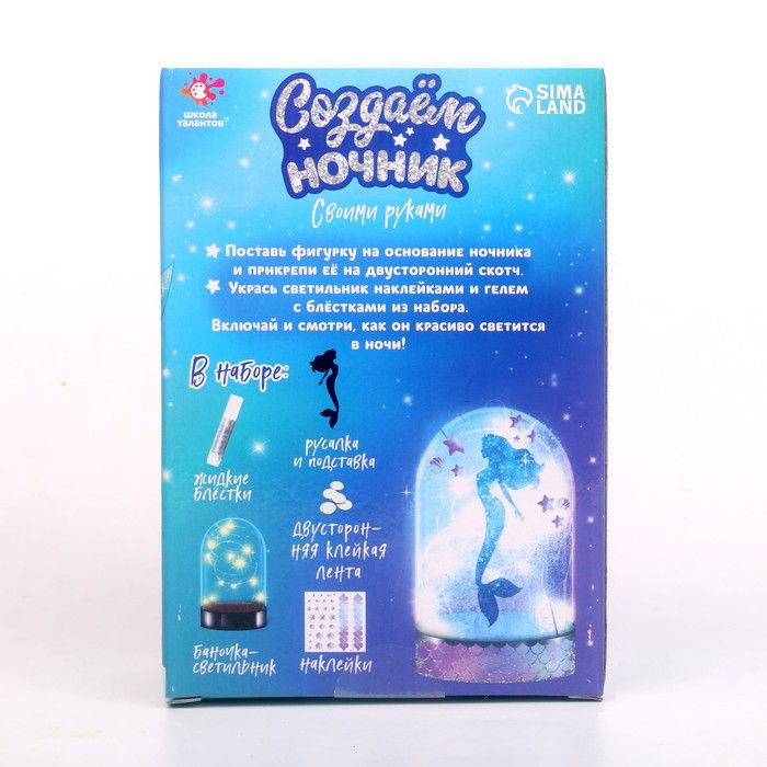 Набор для творчества «Создай ночник: русалочка» — это захватывающее занятие для детей от 3 лет. Превратите обычный вечер в маленькое приключение, декорируя ночник вместе с ребёнком.