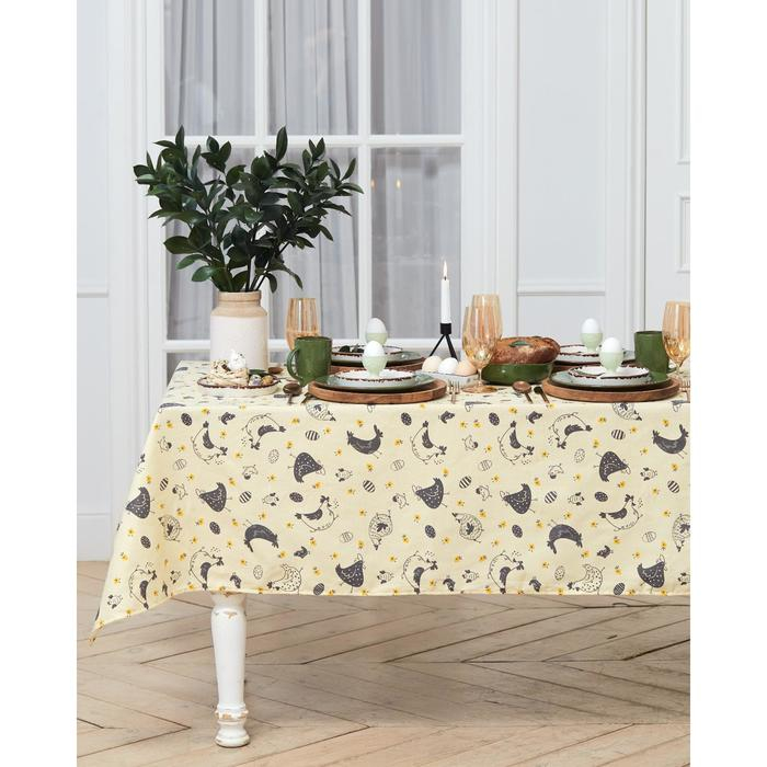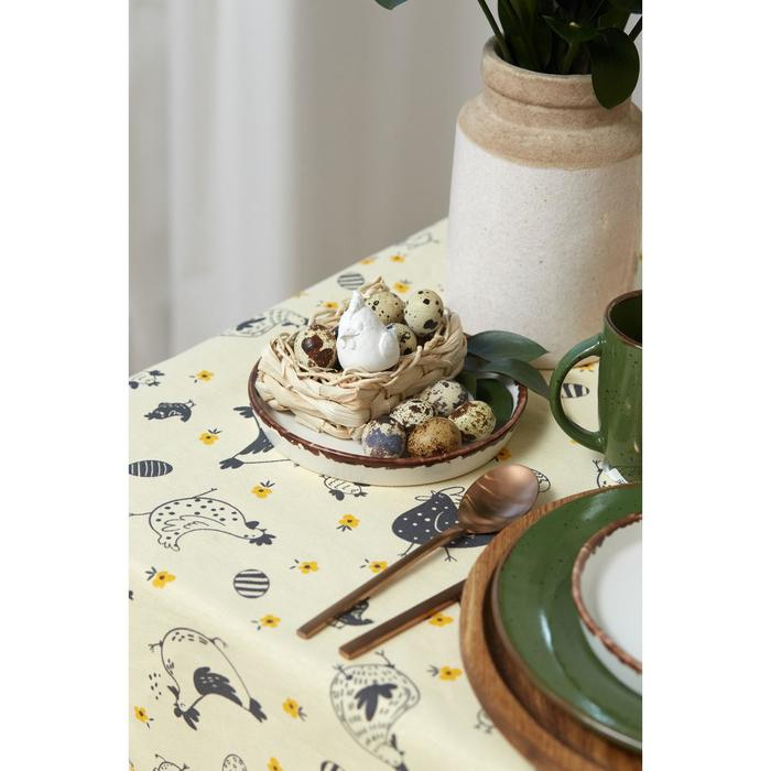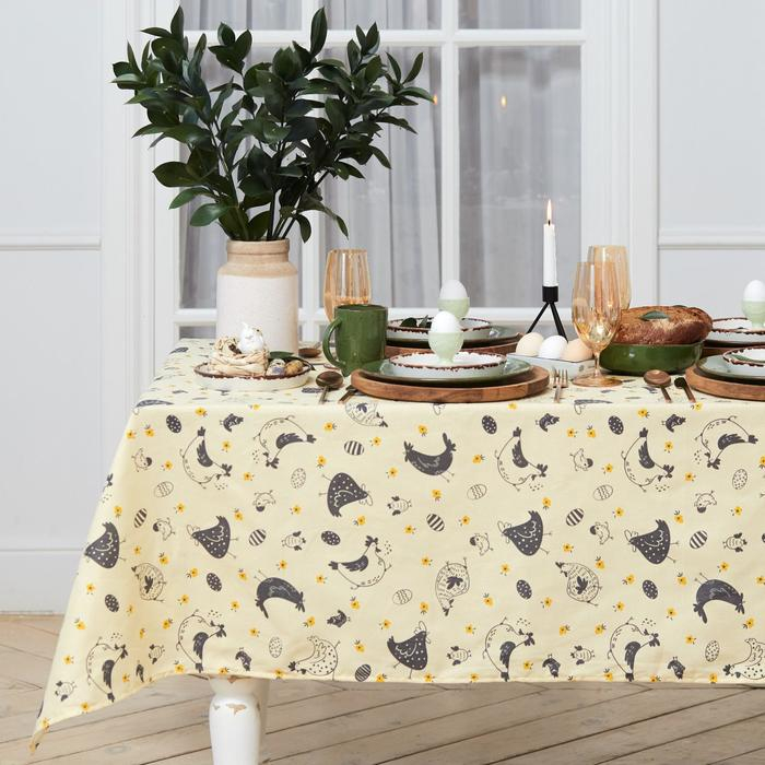 Скатерть пасхальная, Доляна Сhicken farm 220х144 см, 100% хлопок, 164 г/м2