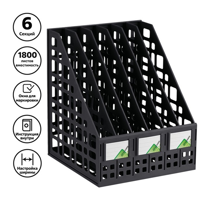 Лоток для бумаг cборный, вертикальный, 6 отделений, чёрный