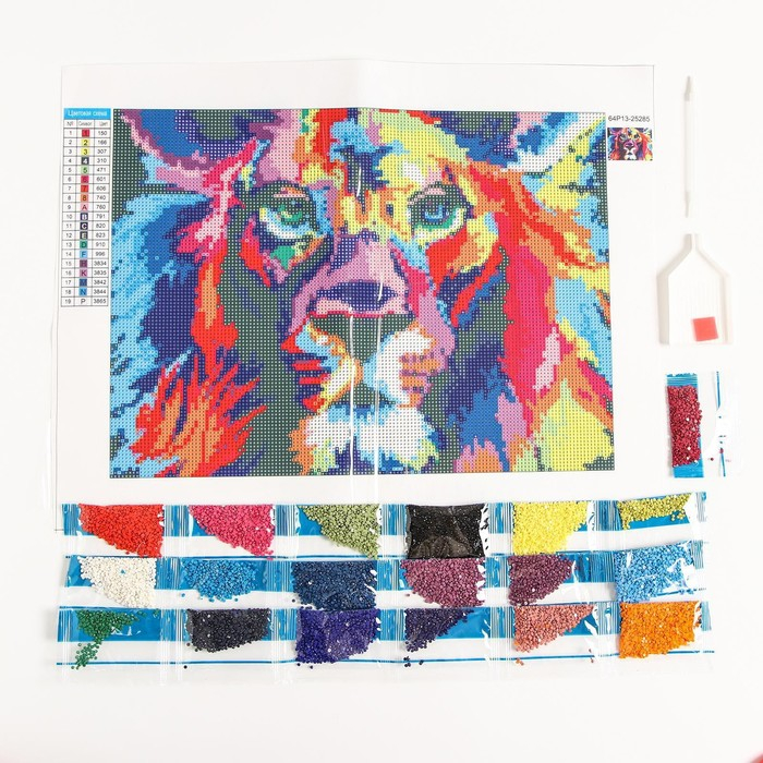 Алмазная мозаика с полным заполнением на холсте «Лев», 30 х 40 см