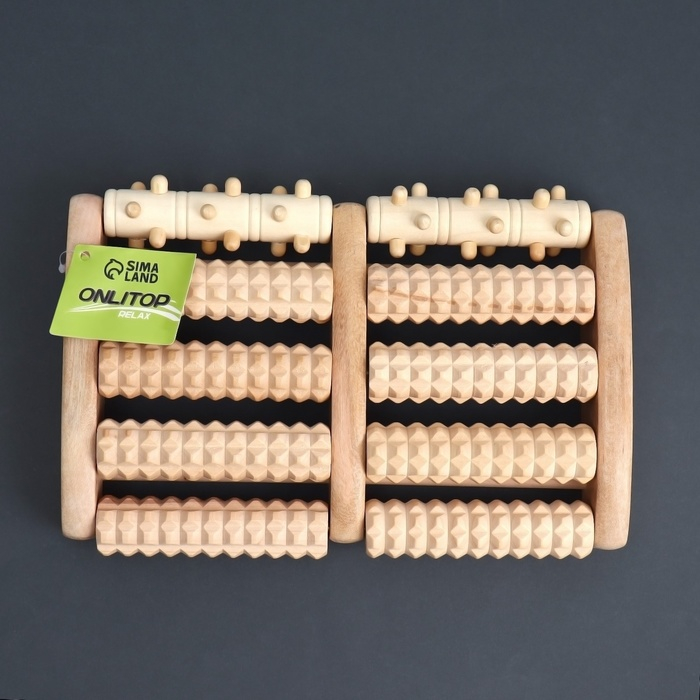 Массажёр «Барабаны», 5 рядов с шипами, 27 × 19 × 5 см, деревянный