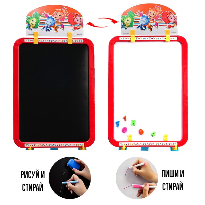 Мольберт 3в1 «Доска для рисования», меловая, магнитно-маркерная, Фиксики