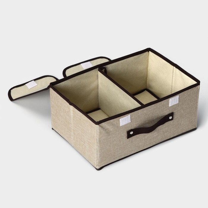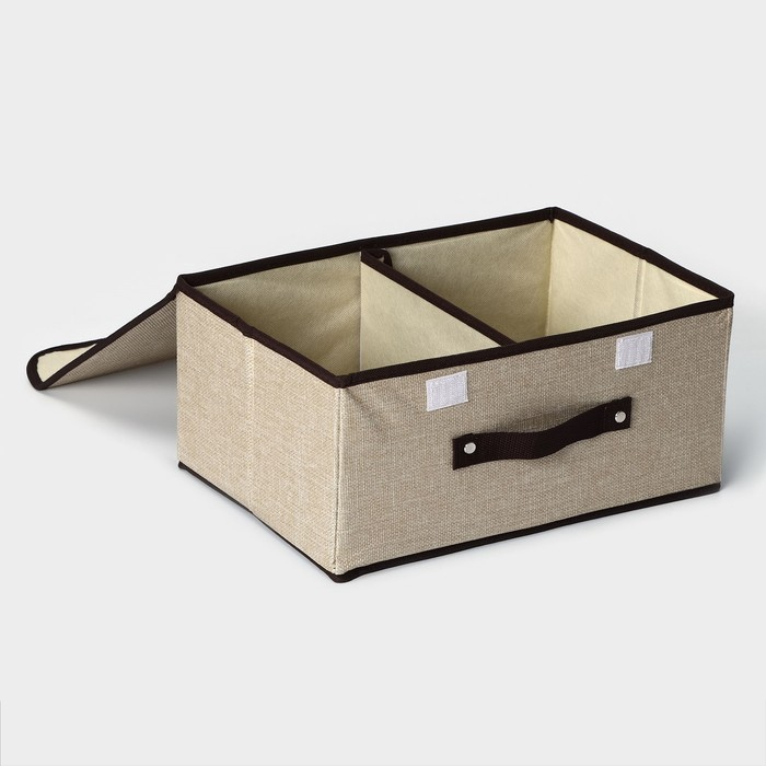 Короб стеллажный для хранения с двойной крышкой Доляна «Тэри», 36×25×16 см, цвет бежевый