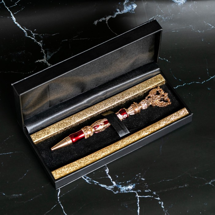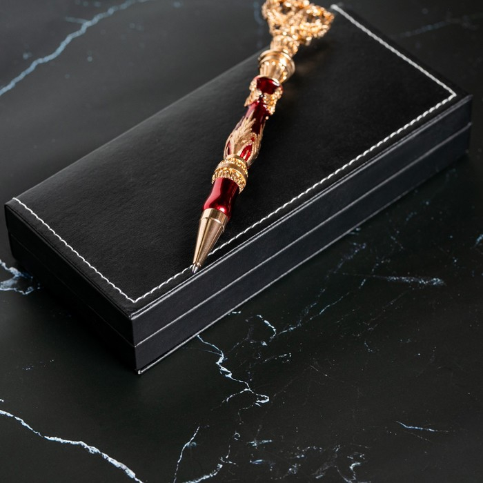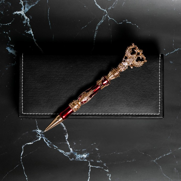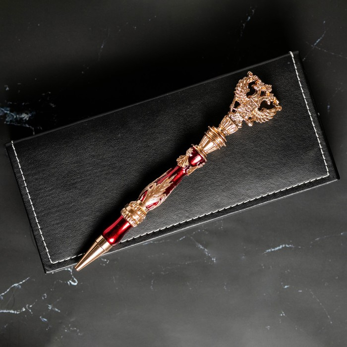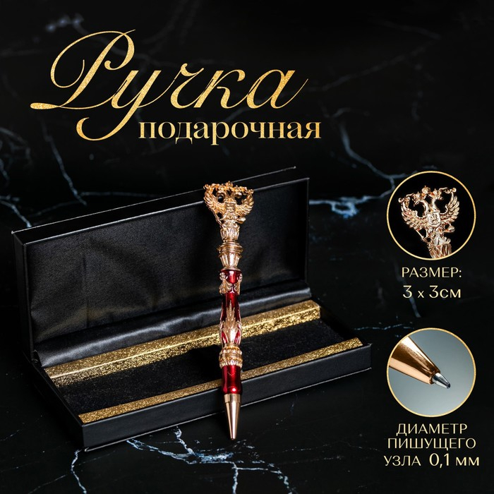 Ручка подарочная шариковая с гербом в футляре, металл , цвет красный, пишущий узел 0,1мм, синяя паста