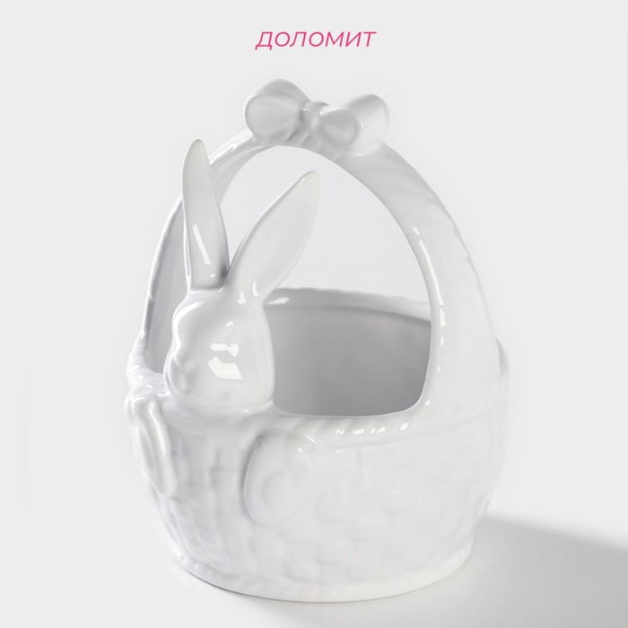 Конфетница Доляна «Зайка» изготовлена из качественного доломита и имеет необычную форму в виде зайца. Изделие универсально и подходит для конфет, печенья, орехов. Можно использовать не только в качестве миски для конфет, но и как фруктовницу, подставку для кексов или оригинальный яйцедержатель.