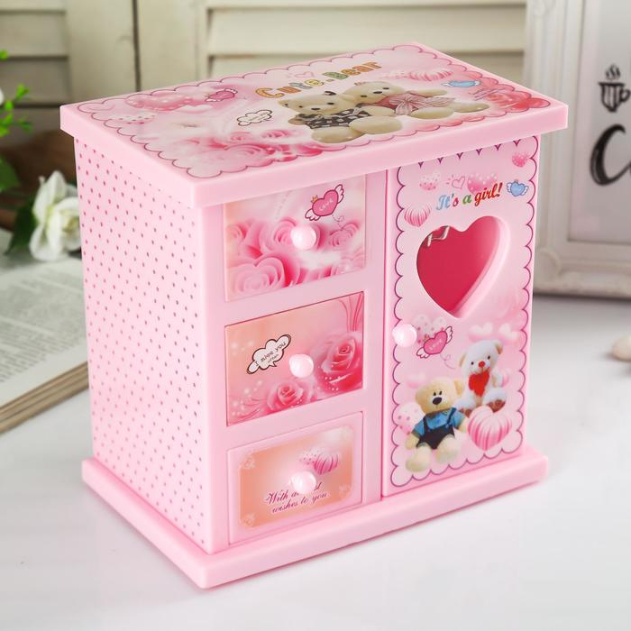 Шкатулка музыкальная "Розовый шкафчик с сюрпризами" 18х18х12 см