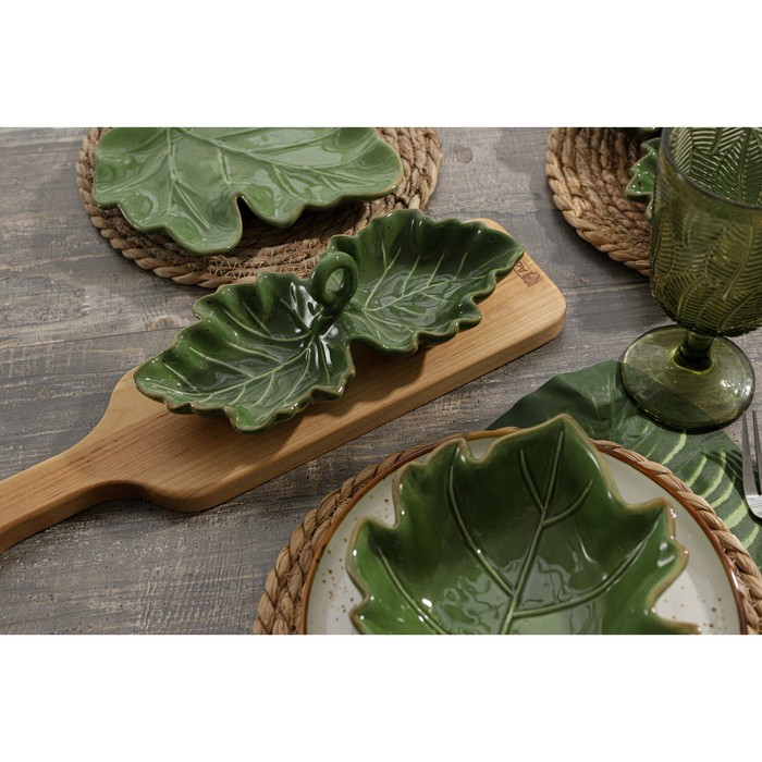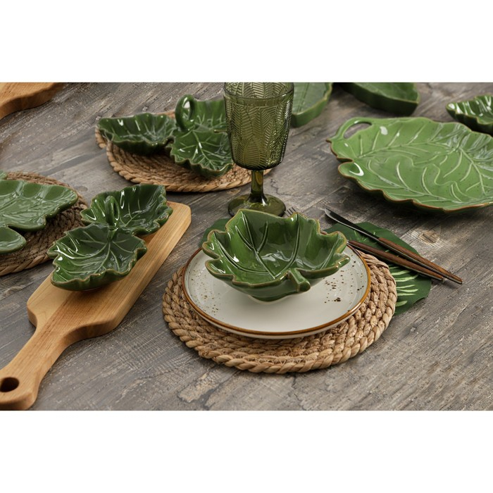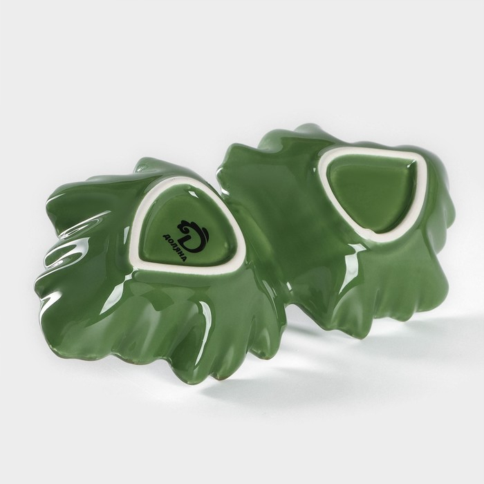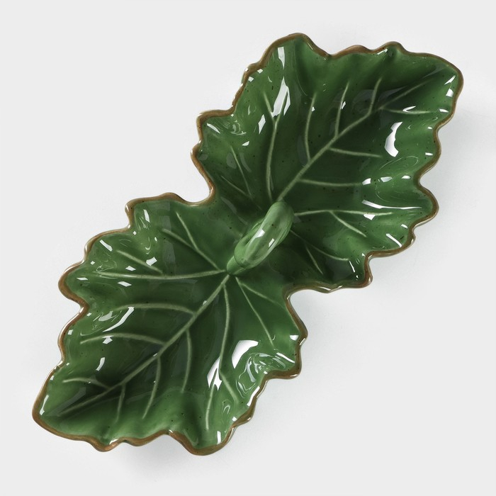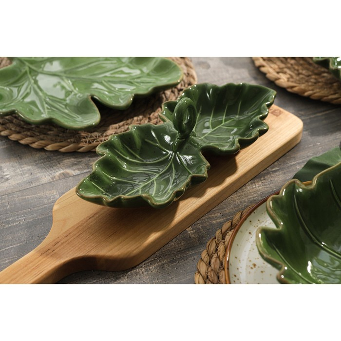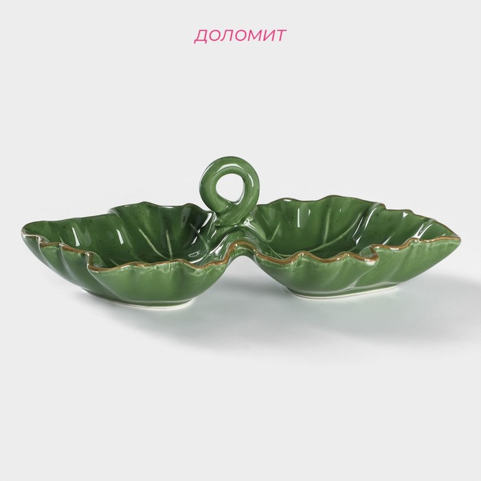 Менажница 2 ячейки Доляна «Лист», 21,8×6,9 см, цвет зелёный
