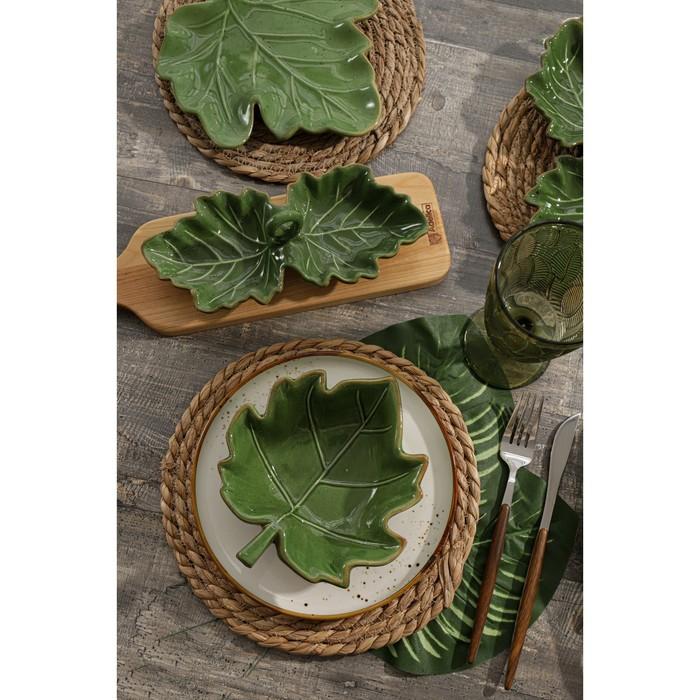 Блюдо сервировочное Доляна «Лист», 20,2×2,2 см, цвет зелёный