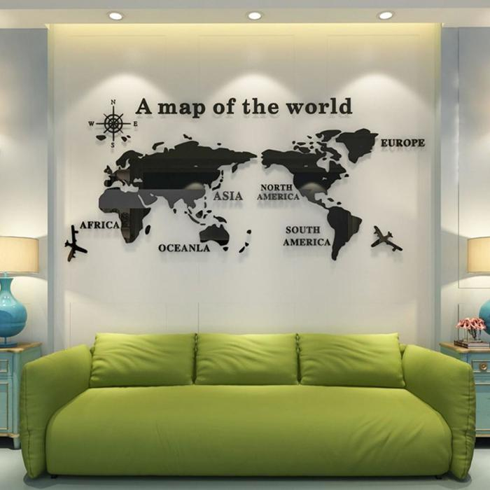 Наклейки интерьерные "Карта мира", зеркальные, декор на стену, панно 54 х 120 см