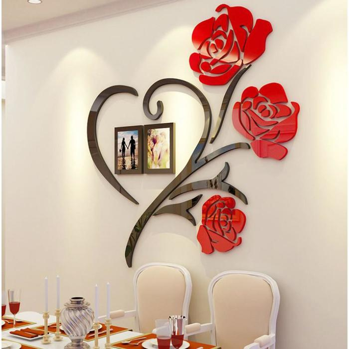 Наклейки интерьерные с фоторамками "Розы", декор на стену, панно 50 х 50 см, рамка 11 х 8 см