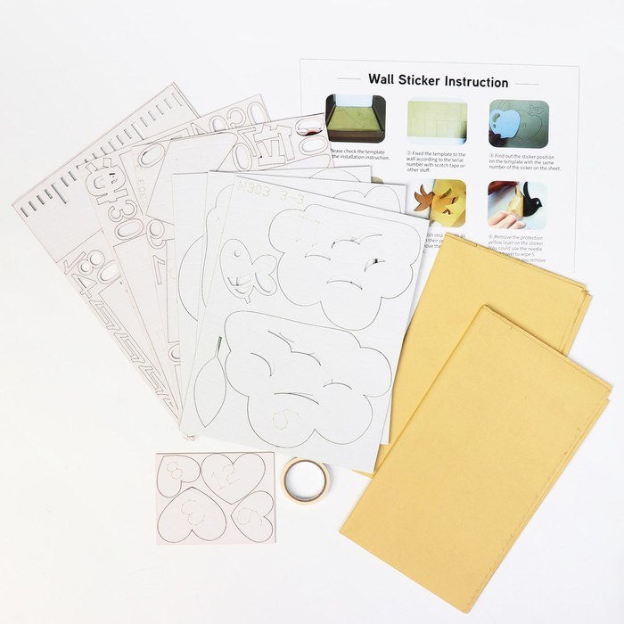 - Приложите наклейку к стене, наметьте место, куда вы хотите её приклеить. При необходимости закрепите её малярным скотчем, чтобы посмотреть издалека, как она будет выглядеть. Если устраивает — начинайте клеить.