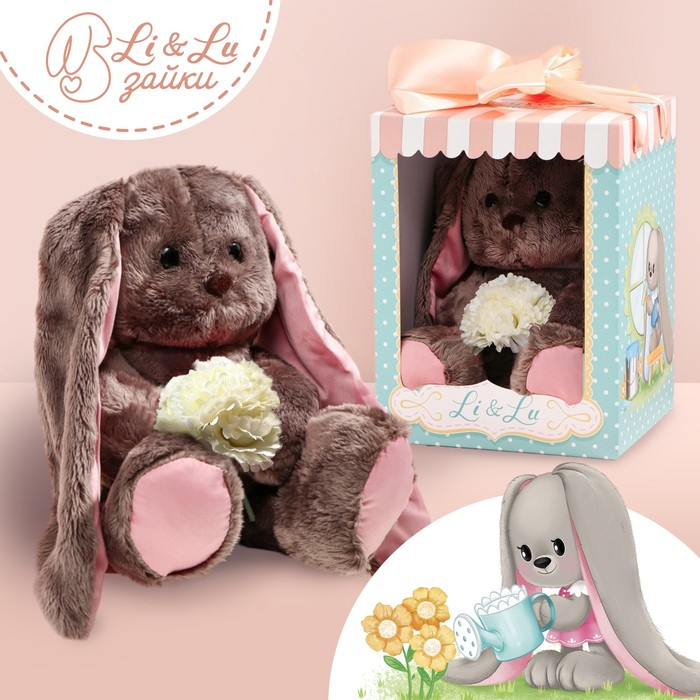 Мягкая игрушка «Li с белыми цветами», заяц, 25 см
