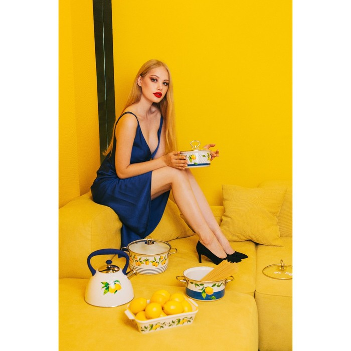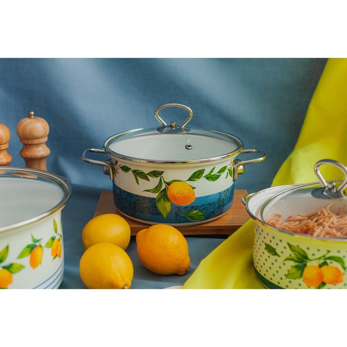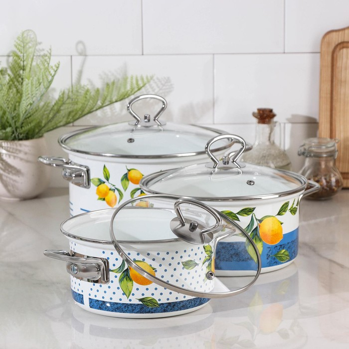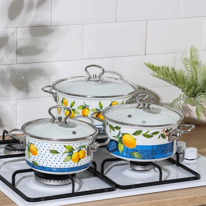 Набор кастрюль Доляна «Лимоны», 3 предмета: 1,9 л, 2,5 л, 3,7 л, стеклянные крышки, индукция