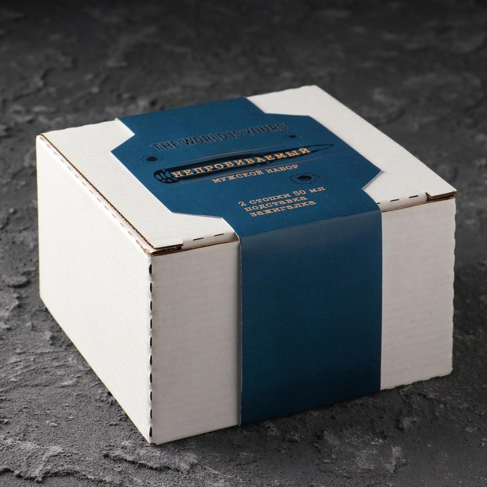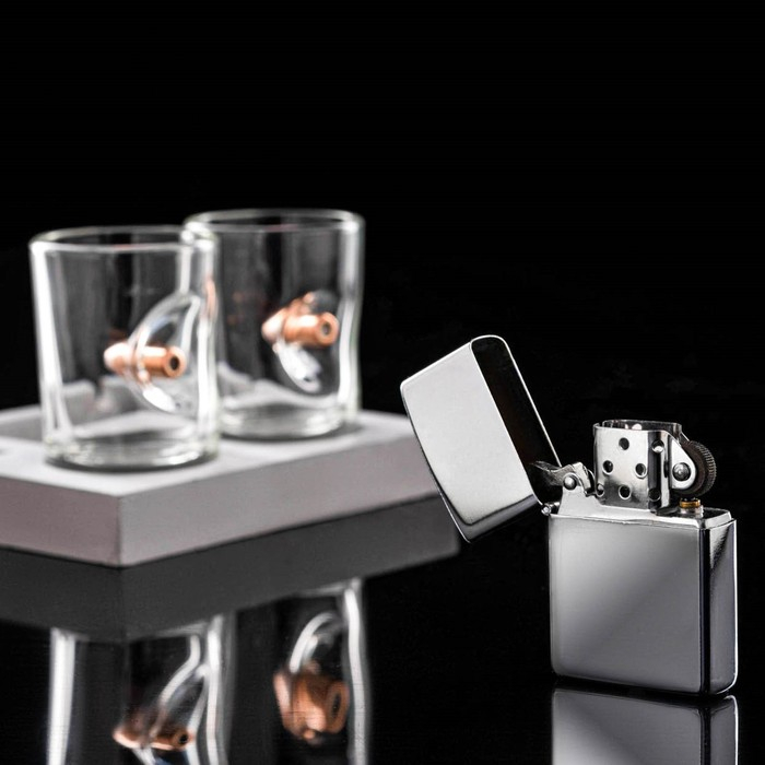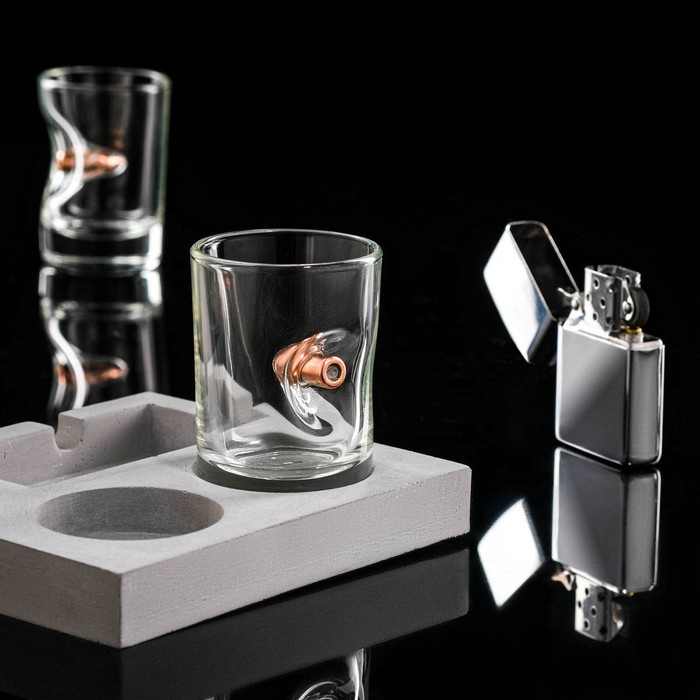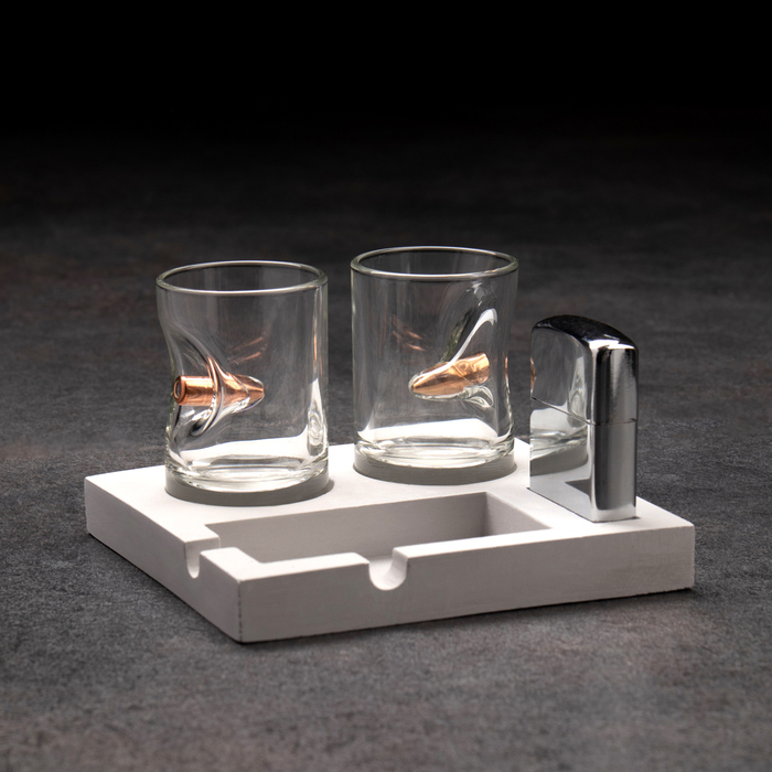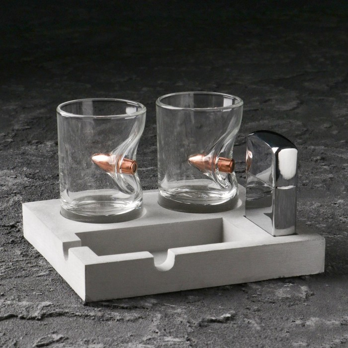 Набор "Непробиваемый", 2 стопки 50 мл с пулей, зажигалка, подставка