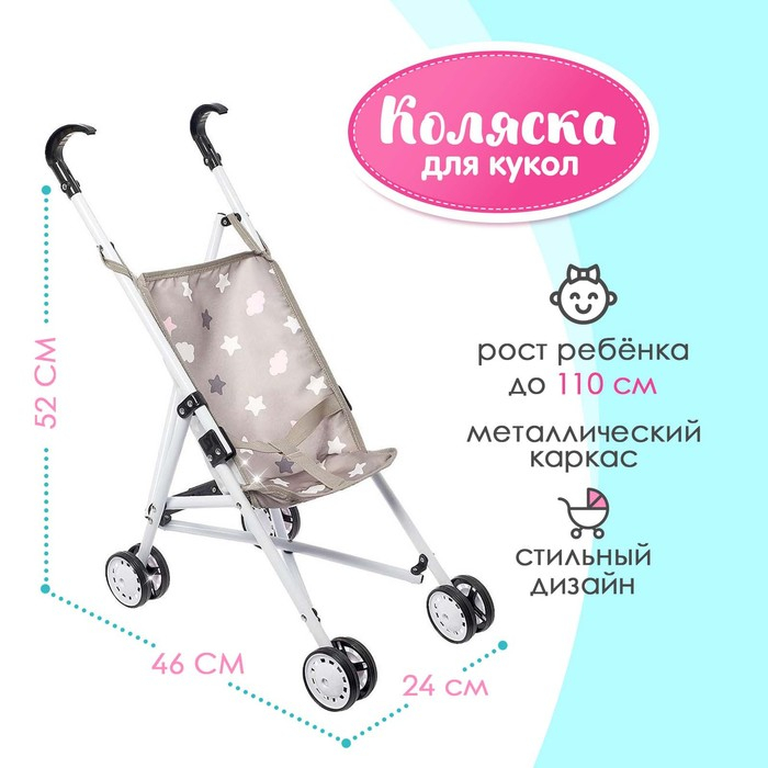 Коляска-трость для куклы, металлический каркас