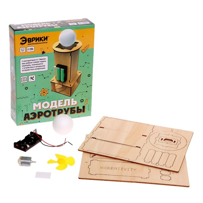 Электронный конструктор из дерева позволит ребёнку собрать рабочую модель воздушной трубы. Малыш познакомится с устройством и узнает интересную историю этого изобретения.