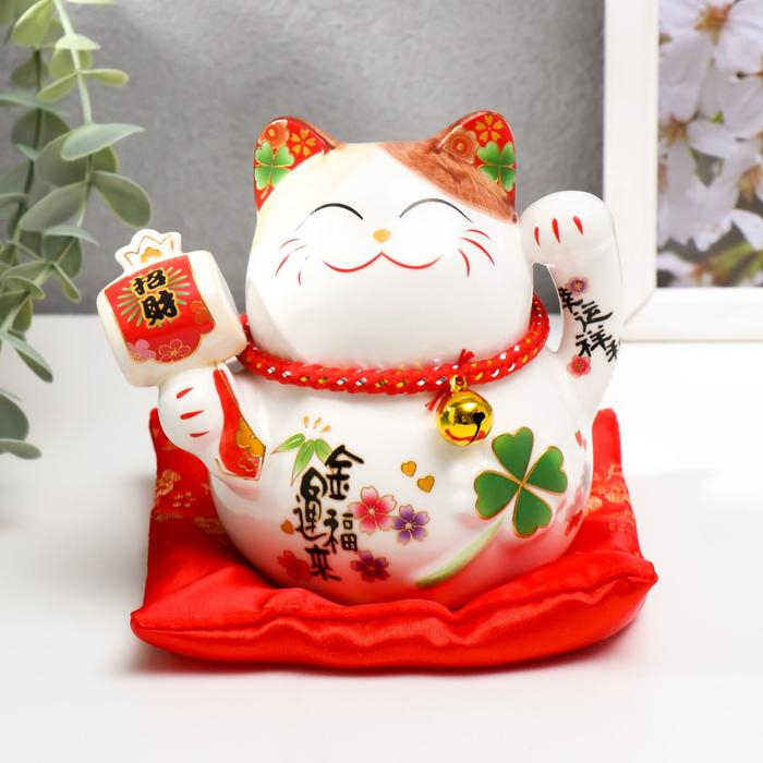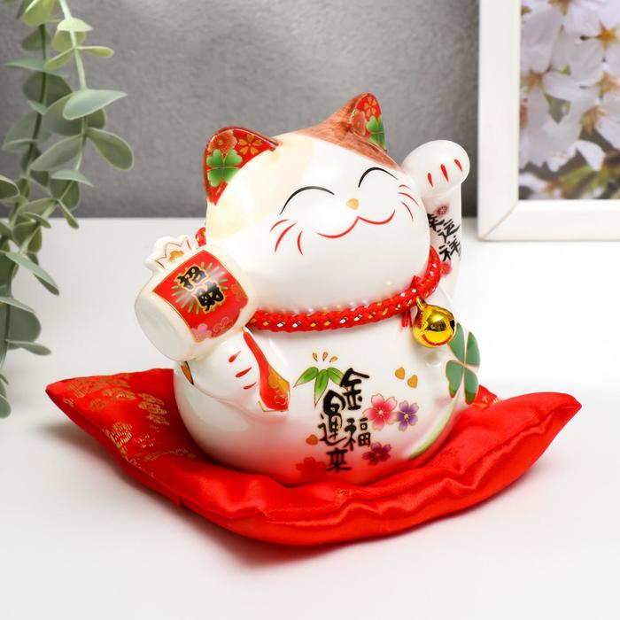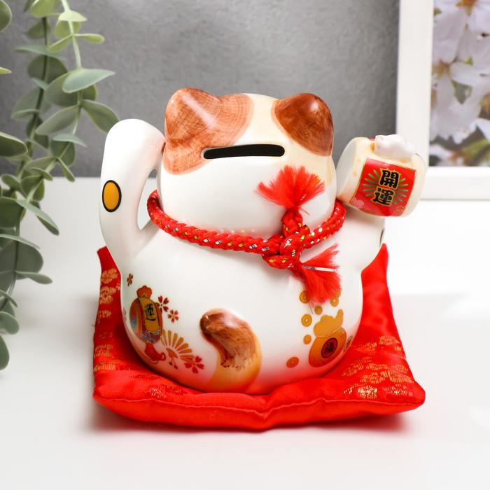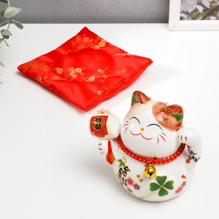 Копилка керамика "Манэки-нэко белый с молоточком" 11х10,5х9,5 см