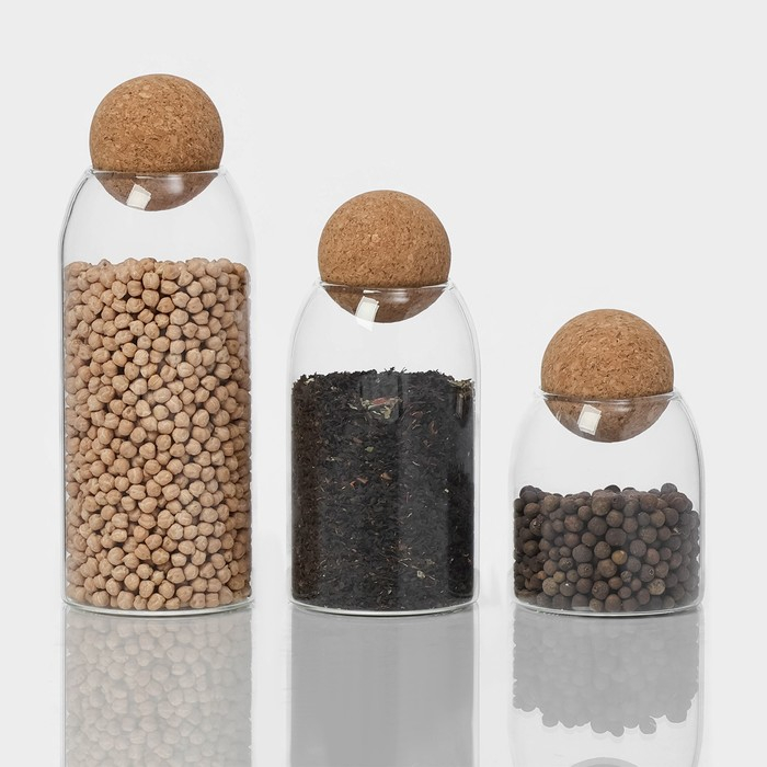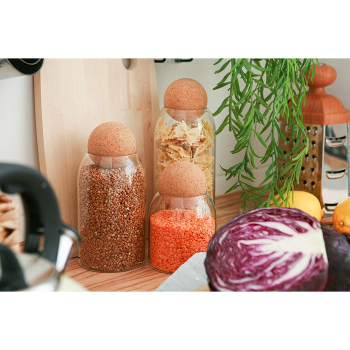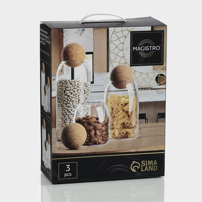 Банки стеклянные для хранения сыпучих продуктов Magistro «Эко», 3 предмета: 450/700/1000 мл, с пробковой крышкой