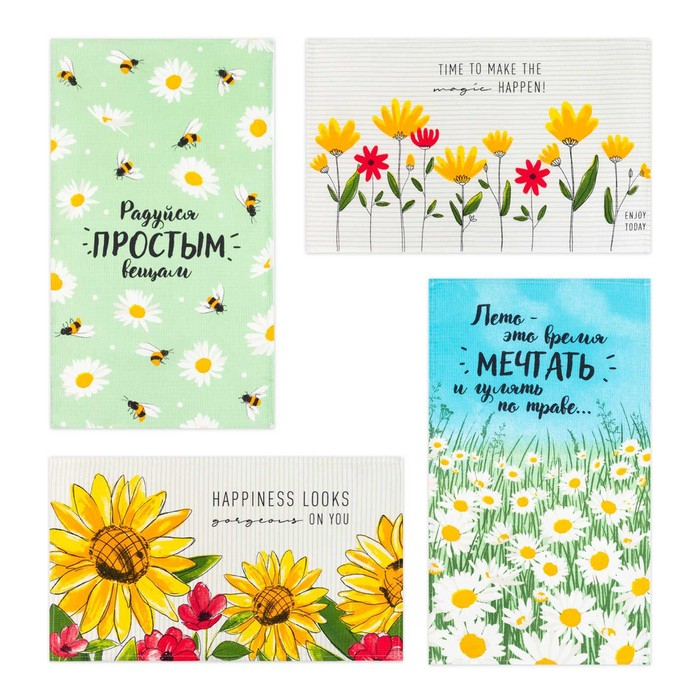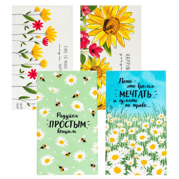 Набор кухонных полотенец Доляна Enjoy today 35х60см-4шт, 100% хлопок