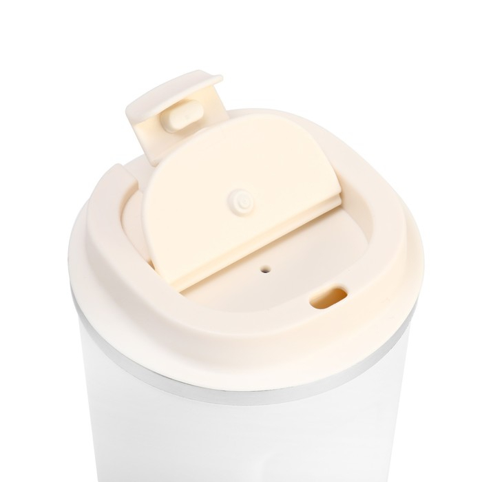 Термокружка выполнена из 304 нержавеющей стали, сконструирована по вакуумной технологии, с двойной стенкой, следовательно, долго держит тепло и не проливается. Снабжена откидывающейся крышкой на 180°, изготовленная из экологичного пищевого пластика, имеется фиксатор, возможность с легкостью использовать термокружку одной рукой. На дне, термокружка имеет специальную прорезиненную основу, предотвращающую царапины на поверхностях.