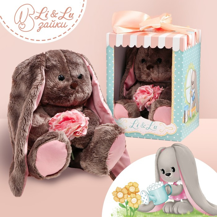 Мягкая игрушка «Li с розовыми цветами», заяц, 25 см